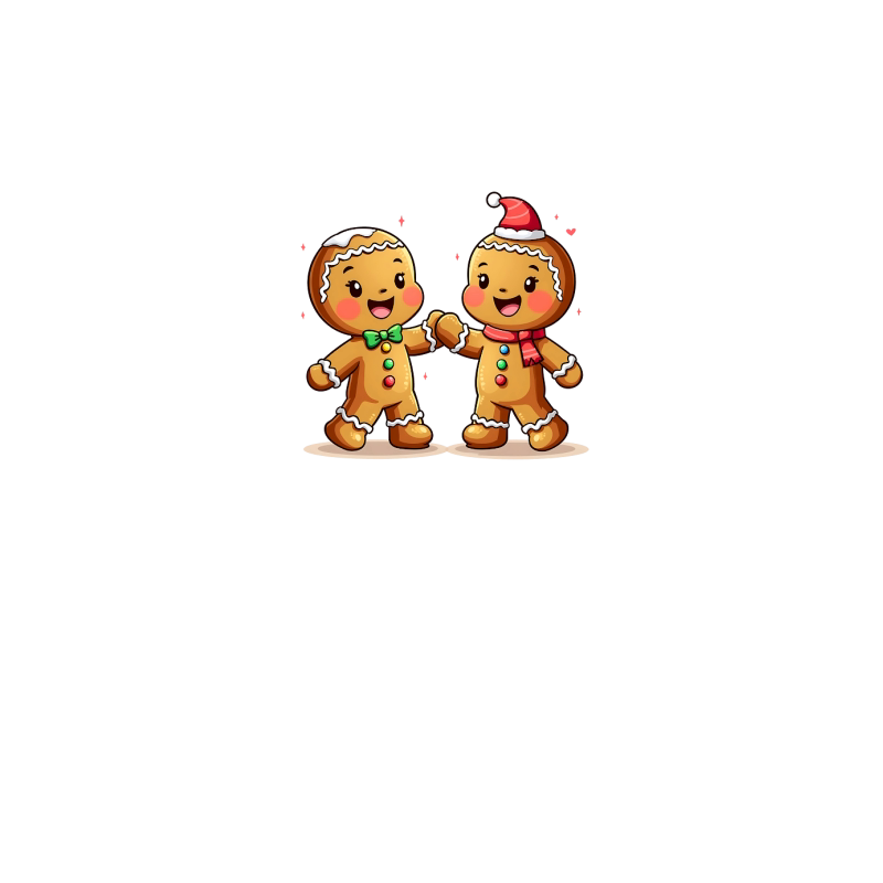 Cute Gingerbread Characters Holding Hand
