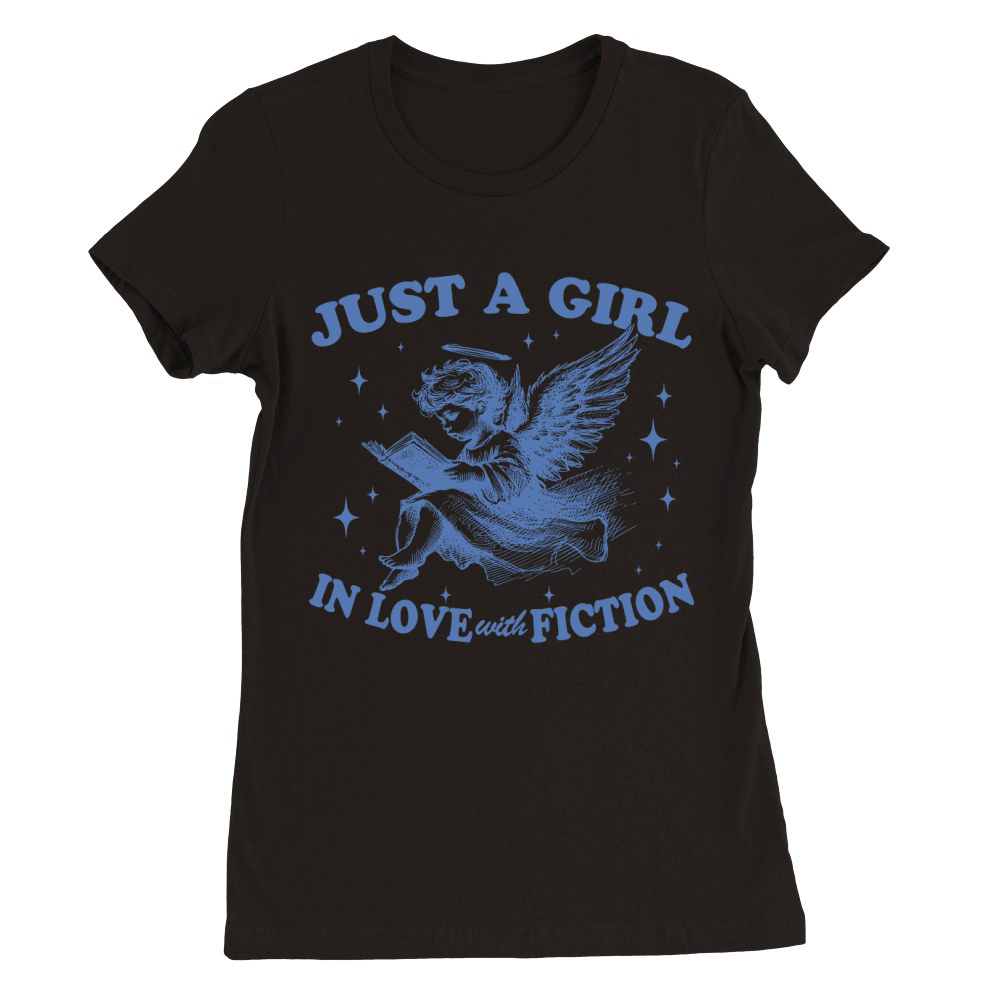 Shop Just A Girl In Love With Fiction Angel Light Blue Premium Womens Crewneck T-shirt custom made just for you. Available on many styles, sizes, and colors.