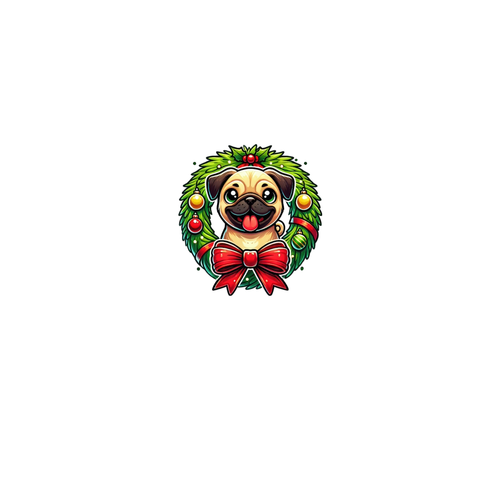 Cute Pug Christmas Wreath Digital