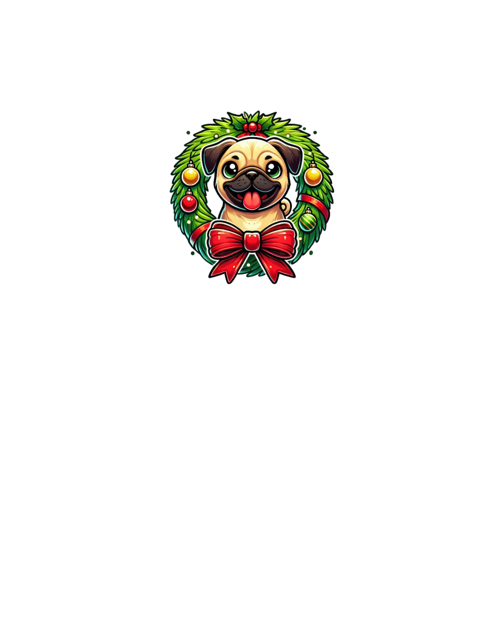 Cute Pug Christmas Wreath Digital