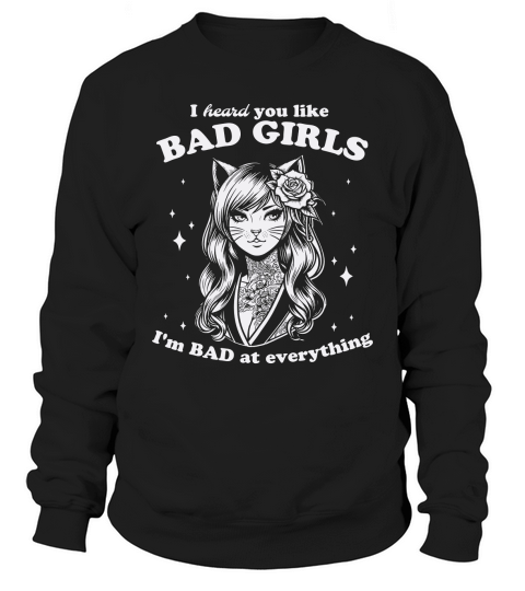 Shop Cat Girl I Heard You Like Bad Girls D White Sweatshirt Unisex custom made just for you. Available on many styles, sizes, and colors.