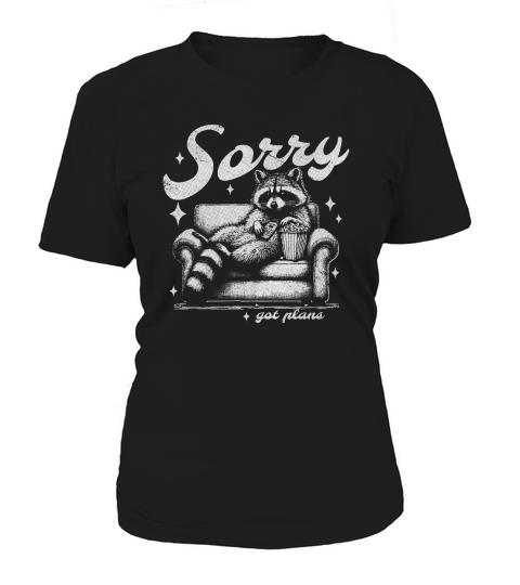 Shop Sorry Got Plans Raccoon Sofa Popcorn D White GR2 Women's T-Shirt custom made just for you. Available on many styles, sizes, and colors.