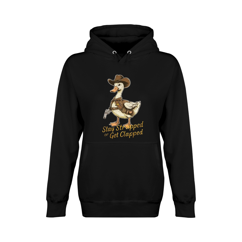 Shop STAY STRAPPED OR GET CLAPPED Unisex Premium Pullover Hoodie custom made just for you. Available on many styles, sizes, and colors.