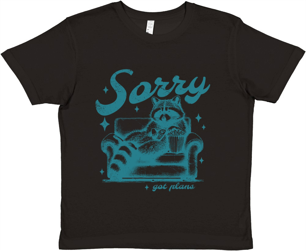 Shop Sorry Got Plans Raccoon Sofa Popcorn D Green GR Premium Kids Crewneck T-shirt custom made just for you. Available on many styles, sizes, and colors.