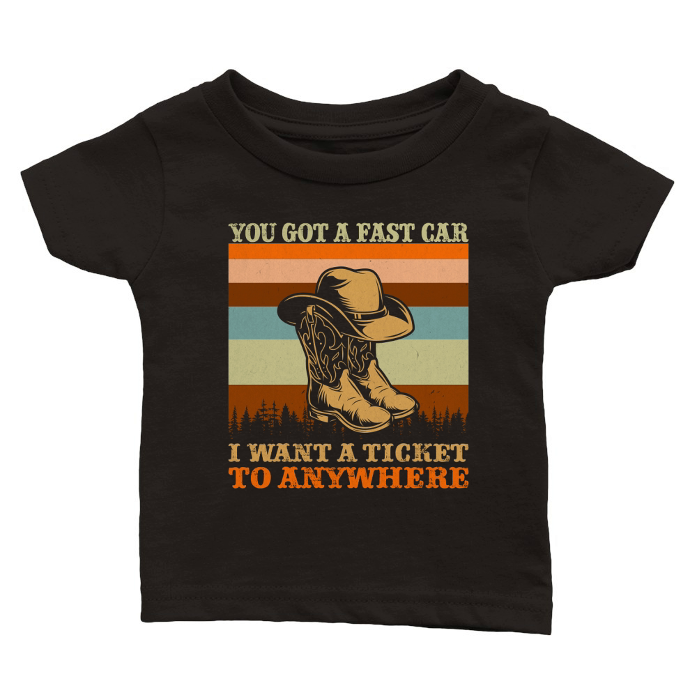 Shop You Got A Fast Car I Want A Ticket To Anywhere Cowboy Boots Classic Baby Crewneck T-shirt custom made just for you. Available on many styles, sizes, and colors.