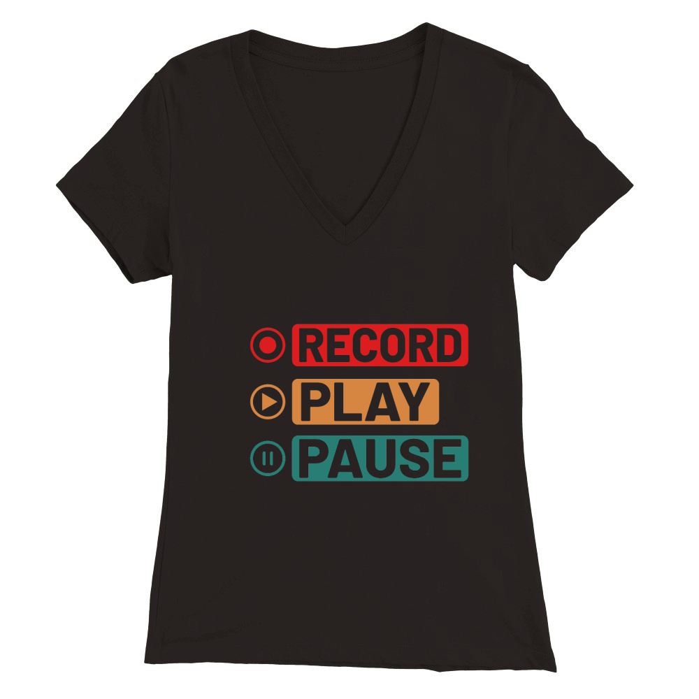 Shop Music Record Play Pause Premium Womens V-Neck T-shirt custom made just for you. Available on many styles, sizes, and colors.