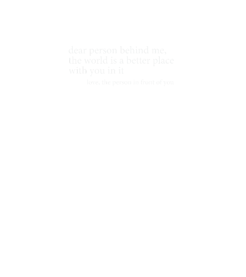 Dear person behind me the world is a better place with you in it love the person in front of you