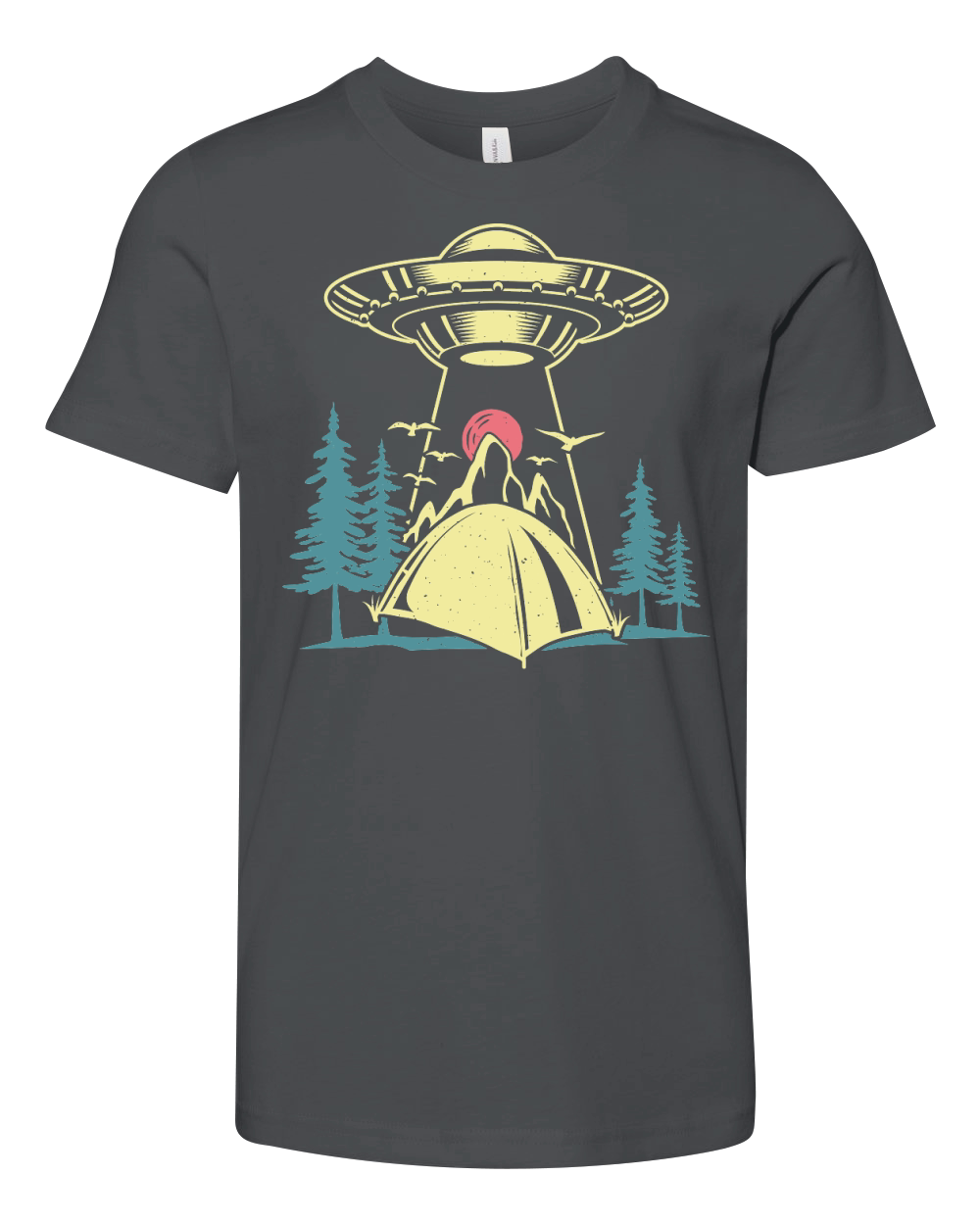 Shop Vintage UFO Alien camping mountain Youth Unisex Jersey Tee custom made just for you. Available on many styles, sizes, and colors.
