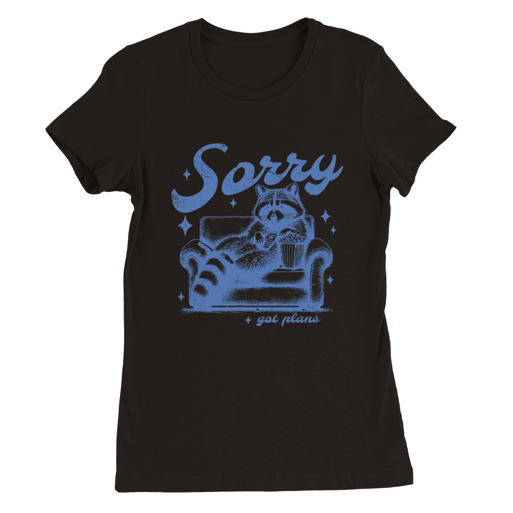 Shop Sorry Got Plans Raccoon Sofa Popcorn D iBlue GR Premium Womens Crewneck T-shirt custom made just for you. Available on many styles, sizes, and colors.