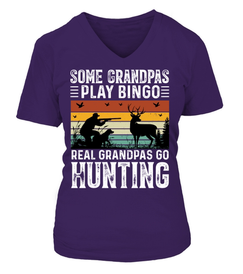 Shop Some Grandpas Play Bingo Real Grandpas Go Hunting V-neck T-Shirt Woman custom made just for you. Available on many styles, sizes, and colors.