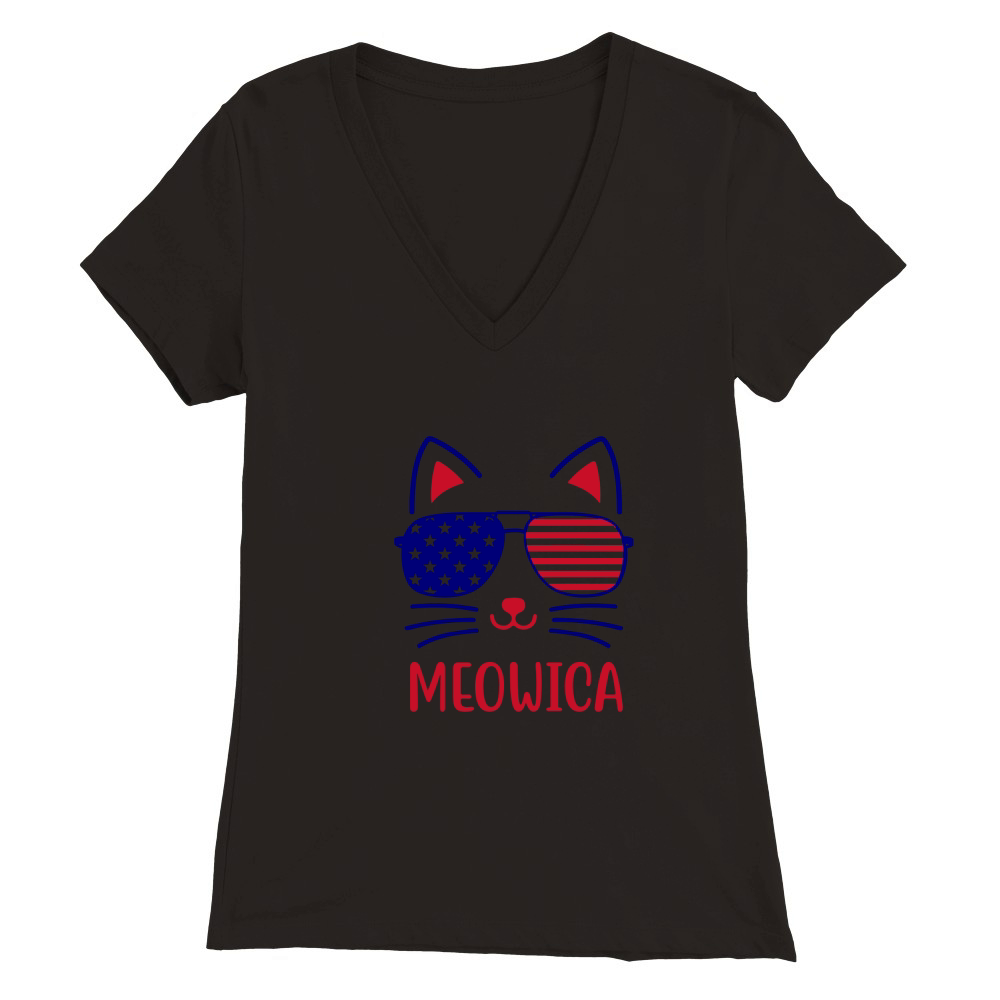 Shop Meowica Premium Womens V-Neck T-shirt custom made just for you. Available on many styles, sizes, and colors.
