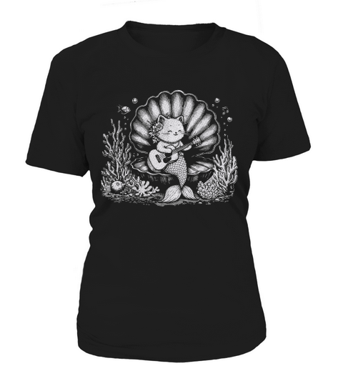 Shop Cat Mermaid Playing Guitar D White GR Women's T-Shirt custom made just for you. Available on many styles, sizes, and colors.