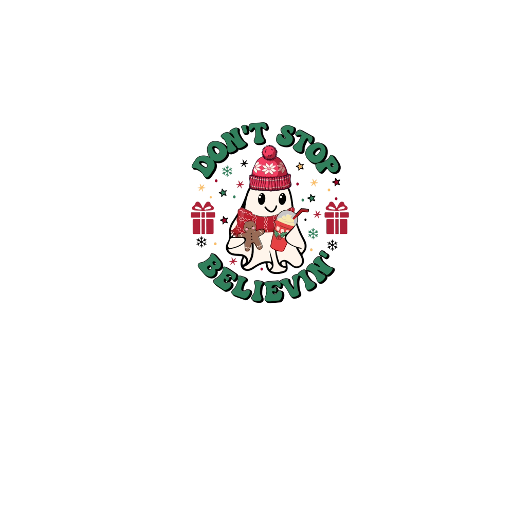 Shop Dont Stop Believin Cute Christmas Ghost Coffee Classic Kids Crewneck T-shirt custom made just for you. Available on many styles, sizes, and colors.
