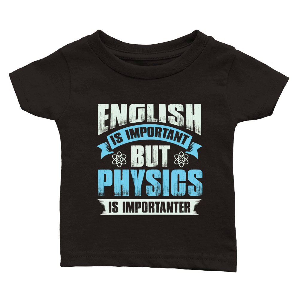 Shop English is important but physics is importanter Classic Baby Crewneck T-shirt custom made just for you. Available on many styles, sizes, and colors.
