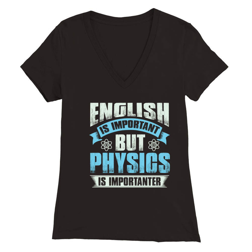 Shop English is important but physics is importanter Premium Womens V-Neck T-shirt custom made just for you. Available on many styles, sizes, and colors.