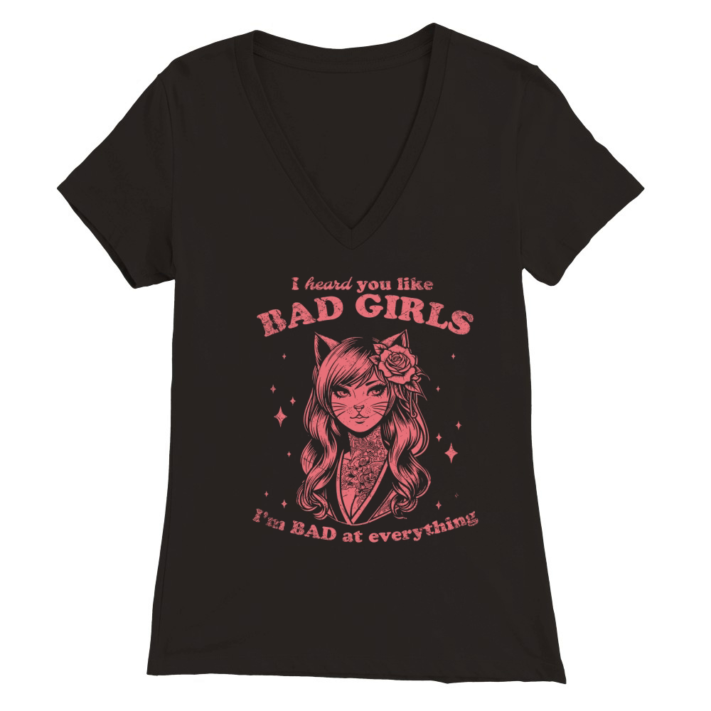 Shop Cat Girl I Heard You Like Bad Girls D Red GR Premium Womens V-Neck T-shirt custom made just for you. Available on many styles, sizes, and colors.