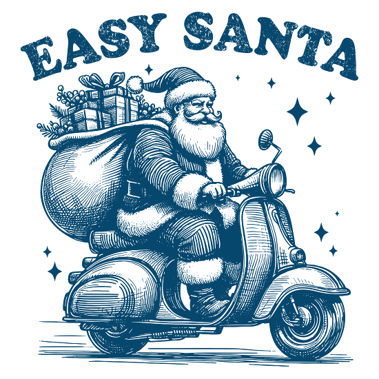 Shop Easy Santa Riding Scooter L Blue Comfort T-shirt custom made just for you. Available on many styles, sizes, and colors.