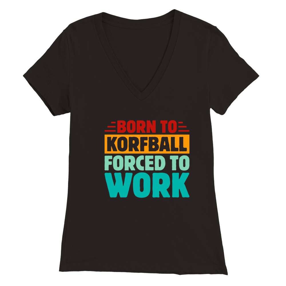 Shop Born To Korfball Forced To Work Premium Womens V-Neck T-shirt custom made just for you. Available on many styles, sizes, and colors.
