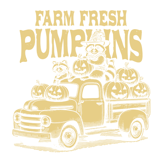 Farm fresh pumpkins Raccoon D Yellow
