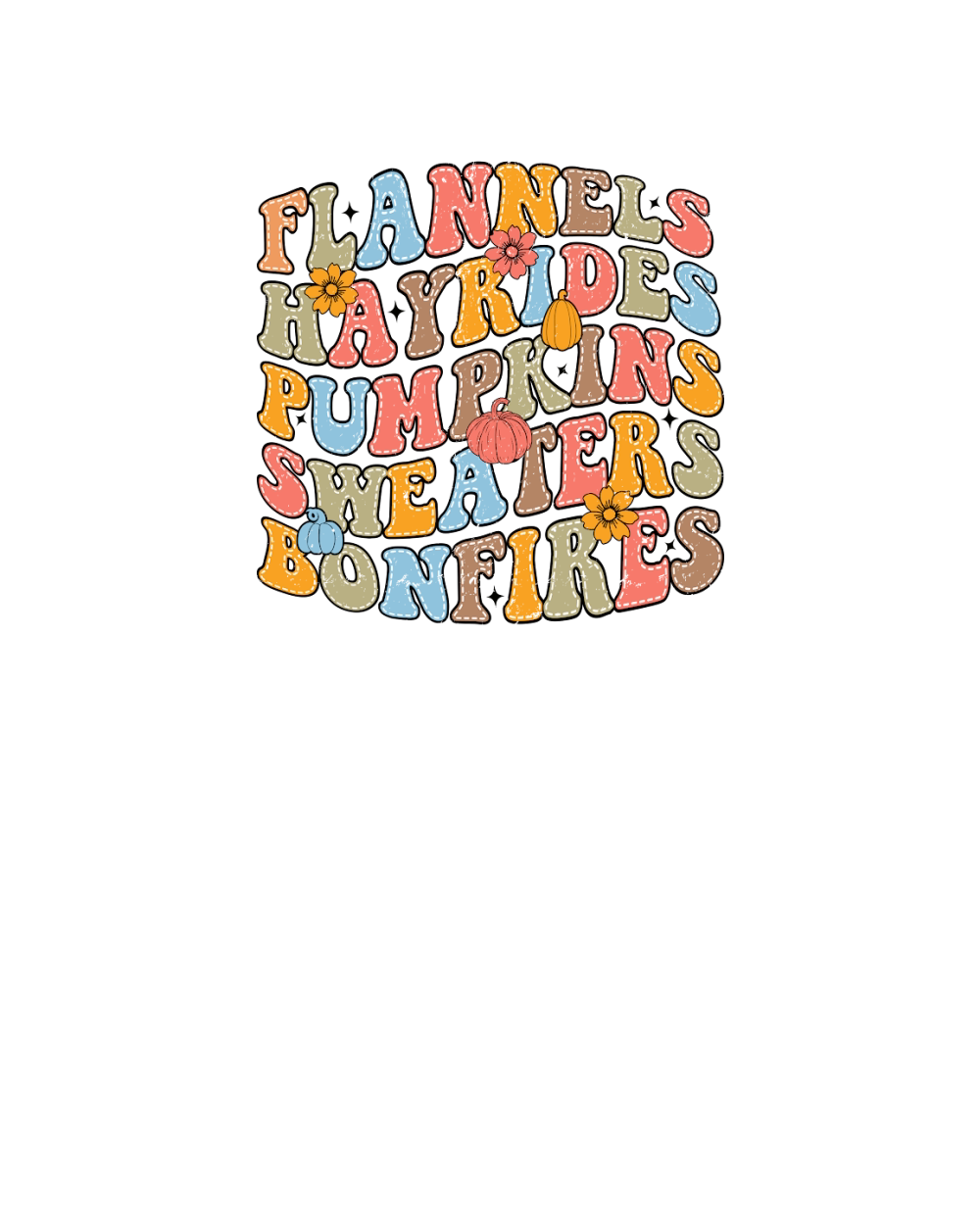 Flannels hayrides pumpkins sweaters bonfires