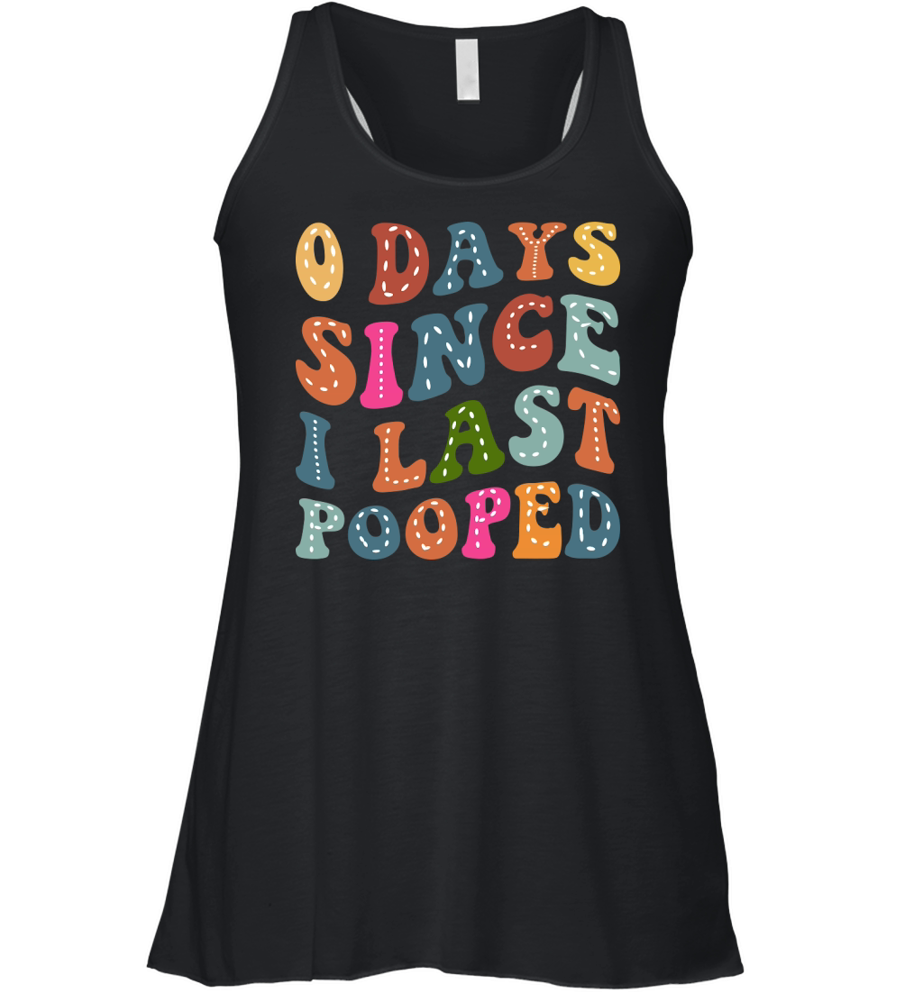Shop 0 Days Since I Last Pooped Women's Flowy Tank Top custom made just for you. Available on many styles, sizes, and colors.