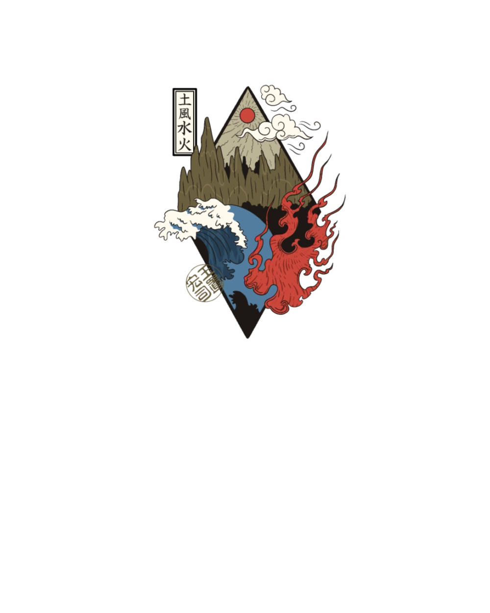 four elements japanese illustration
