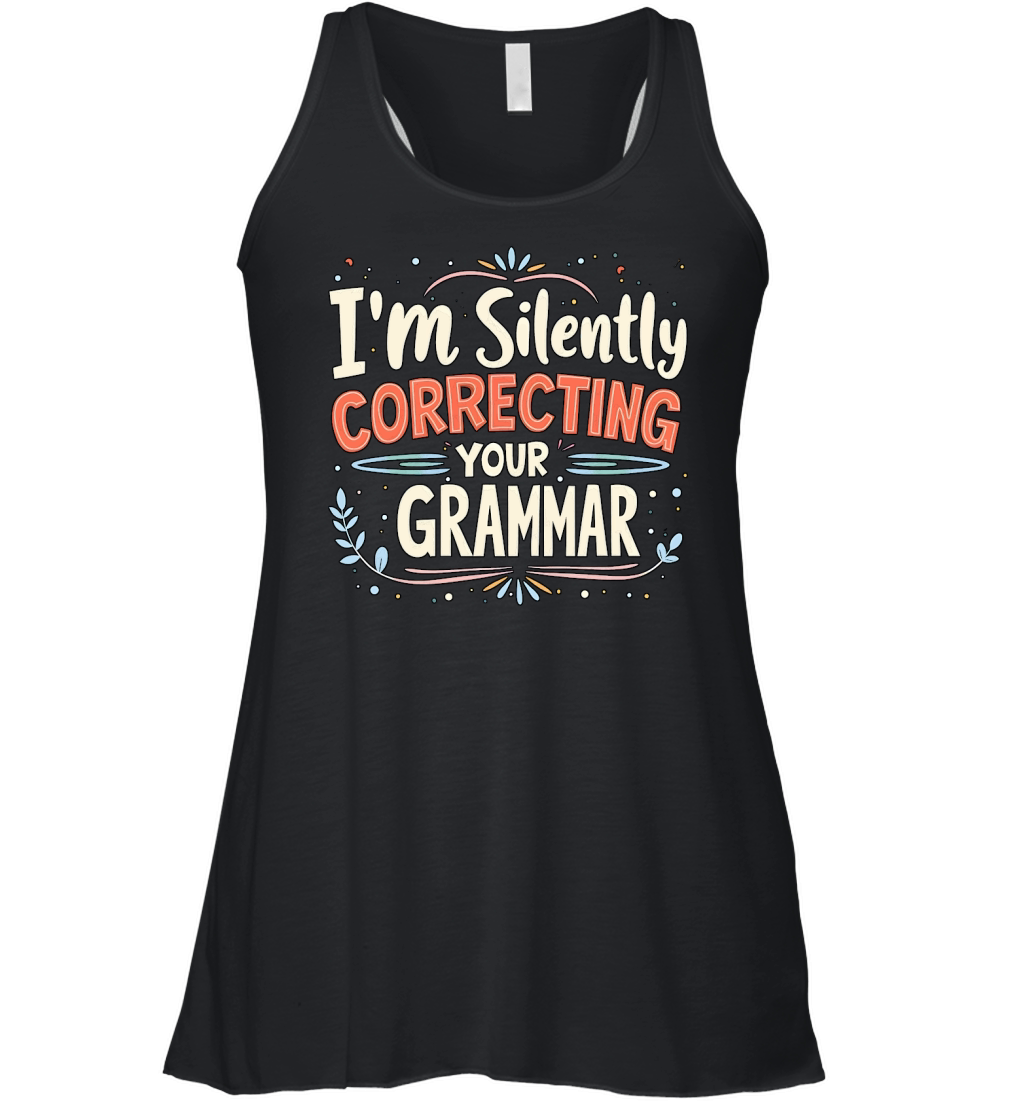 Shop Im silently correcting your grammar Women's Flowy Tank Top custom made just for you. Available on many styles, sizes, and colors.