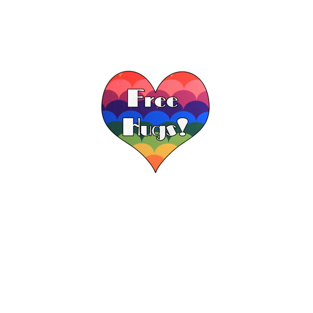 Free Hugs retro rainbow heart design