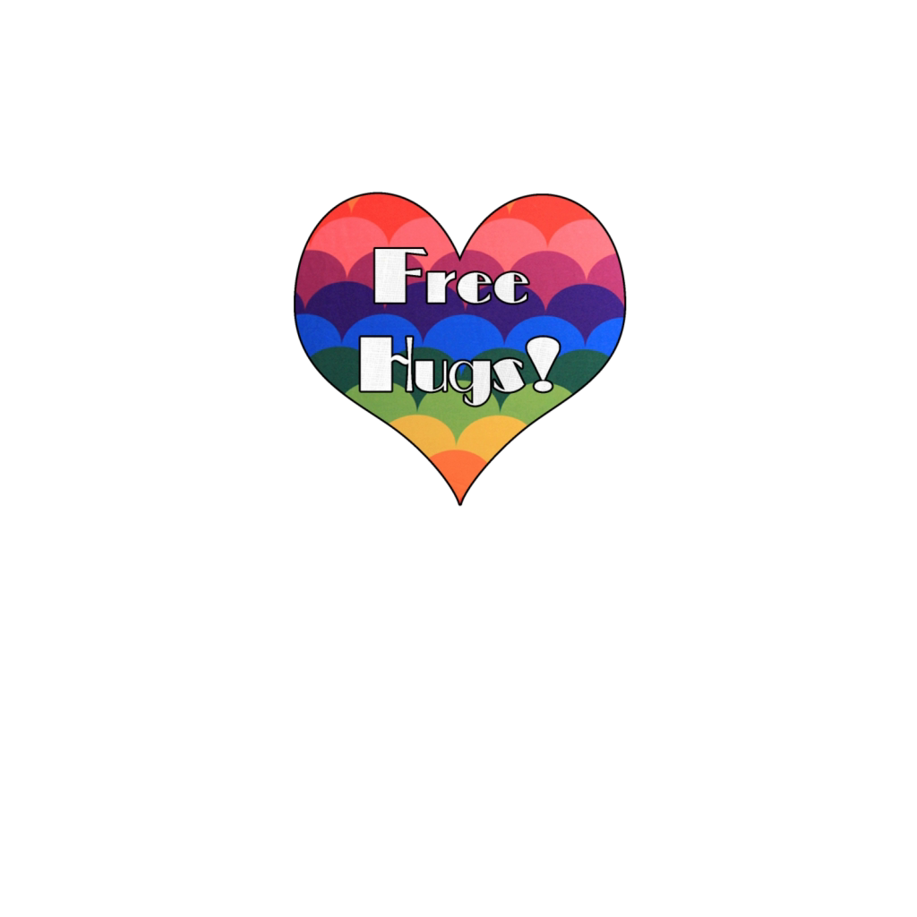 Free Hugs retro rainbow heart design