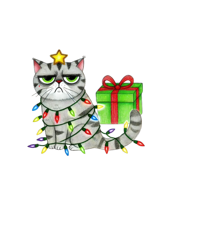 Funny Cat and Christmas Lights