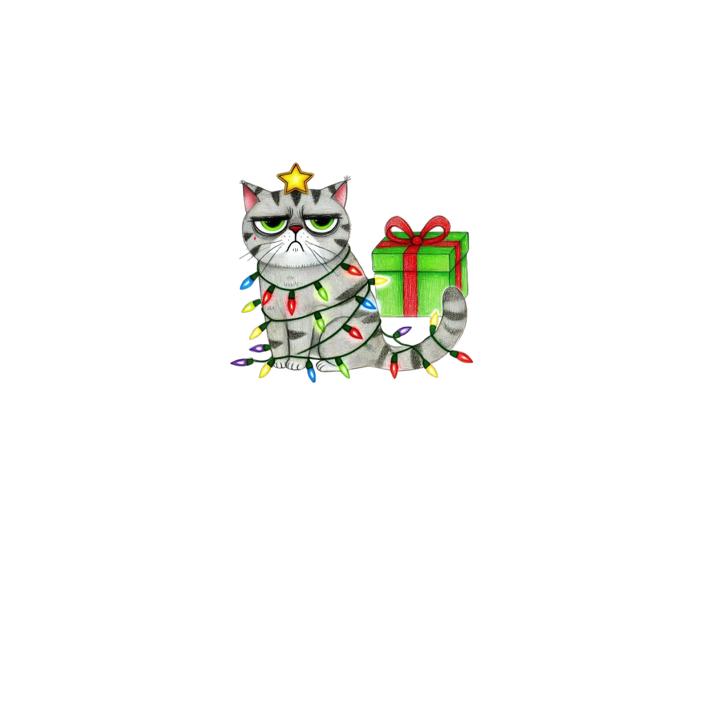 Funny Cat and Christmas Lights