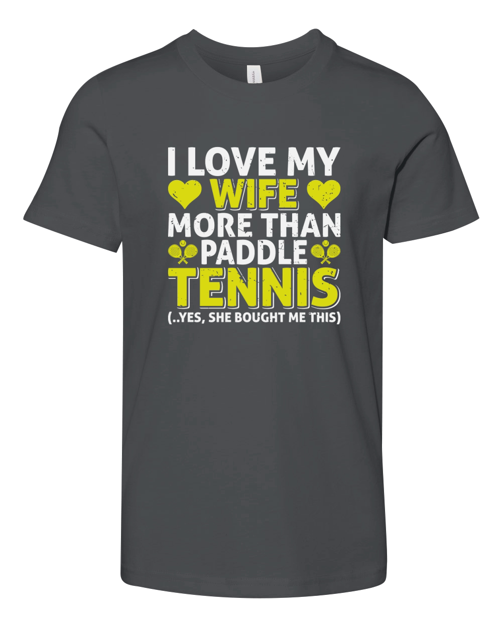 Shop I Love My Wife More Than Paddle Tennis Yes She Bought Me This Youth Unisex Jersey Tee custom made just for you. Available on many styles, sizes, and colors.