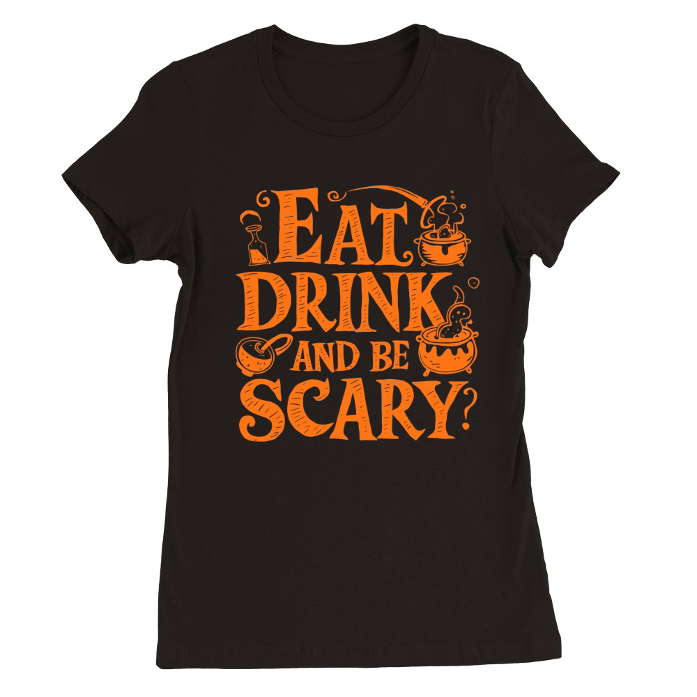 Shop Eat Drink And Be Scary Premium Womens Crewneck T-shirt custom made just for you. Available on many styles, sizes, and colors.