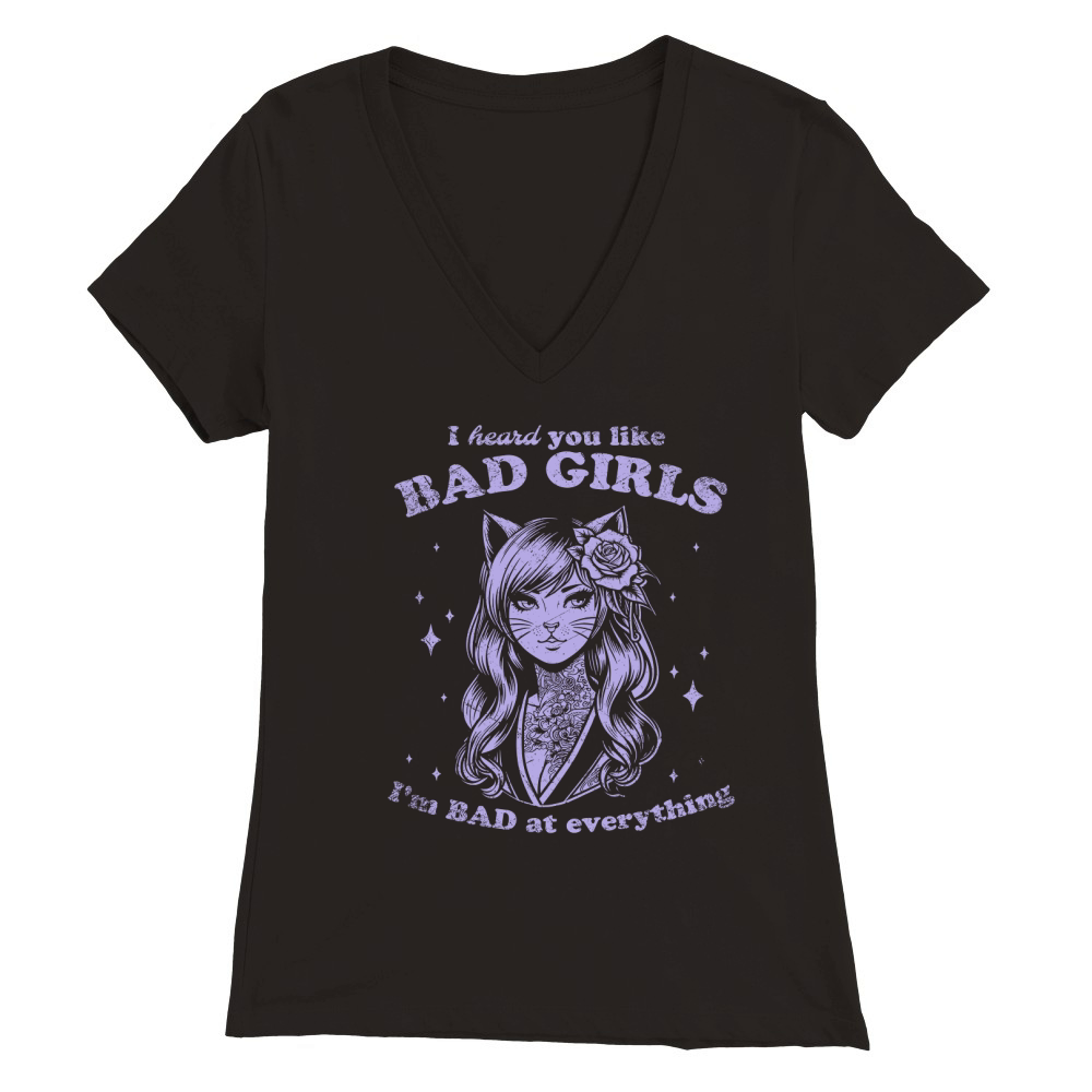 Shop Cat Girl I Heard You Like Bad Girls D Violet GR Premium Womens V-Neck T-shirt custom made just for you. Available on many styles, sizes, and colors.