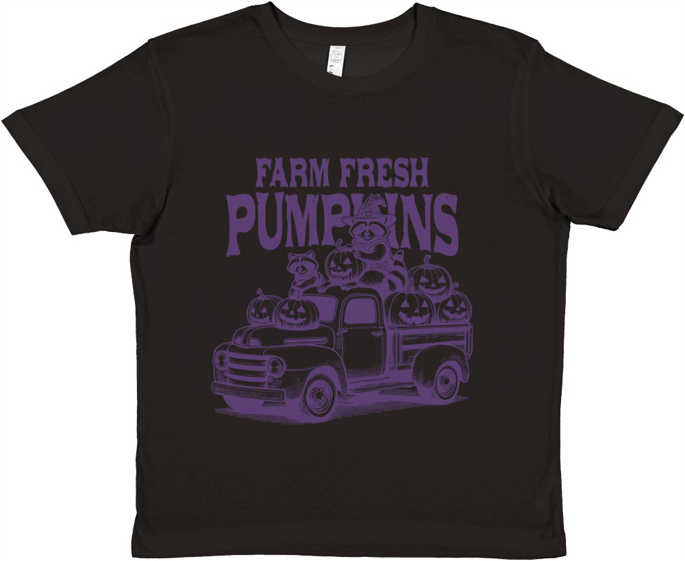 Shop Farm fresh pumpkins Raccoon L Violet Premium Kids Crewneck T-shirt custom made just for you. Available on many styles, sizes, and colors.