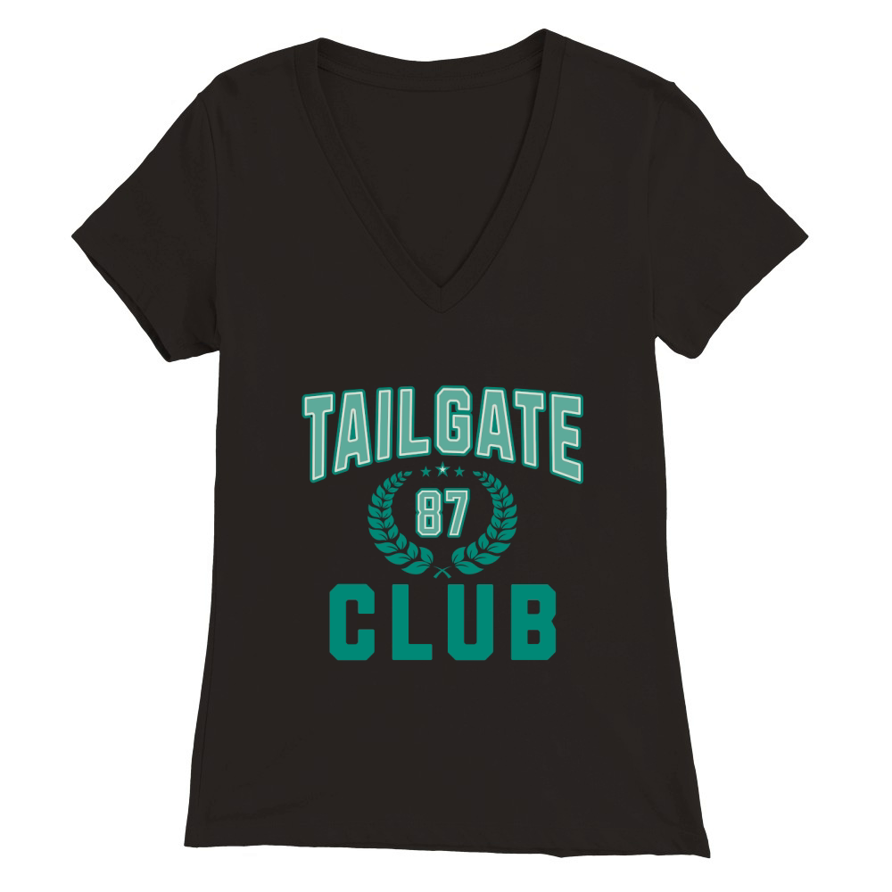 Shop Tailgate 87 club Premium Womens V-Neck T-shirt custom made just for you. Available on many styles, sizes, and colors.