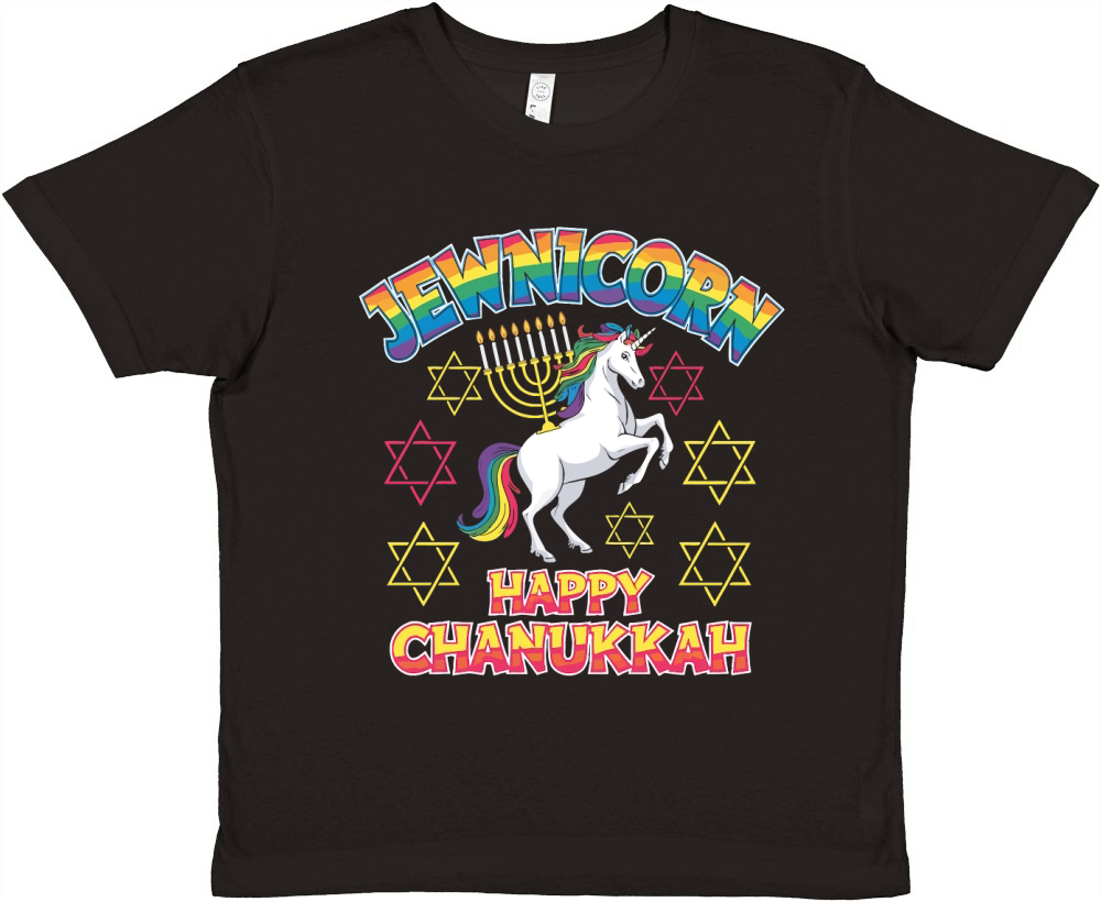 Shop Jewnicorn Happy Chanukkah Premium Kids Crewneck T-shirt custom made just for you. Available on many styles, sizes, and colors.