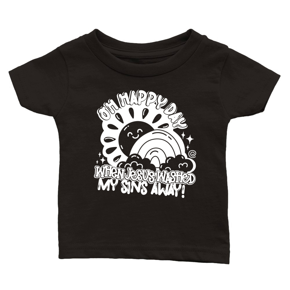 Shop OHhappydayWhte Classic Baby Crewneck T-shirt custom made just for you. Available on many styles, sizes, and colors.