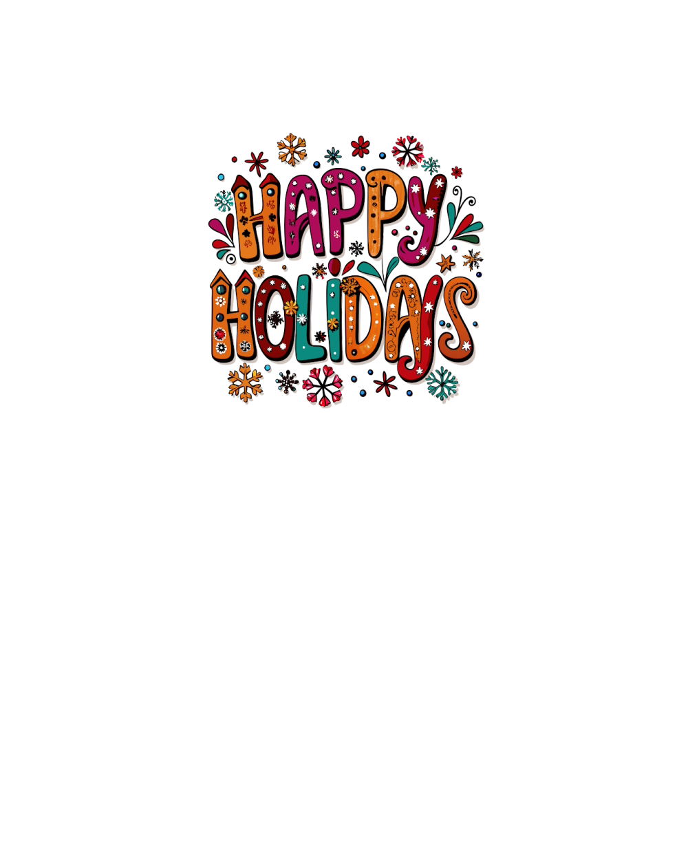 happy holidays bold letters with snow
