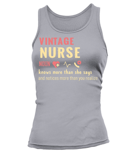 Shop vintage Nurse noun knows more than she says Tank top Woman custom made just for you. Available on many styles, sizes, and colors.