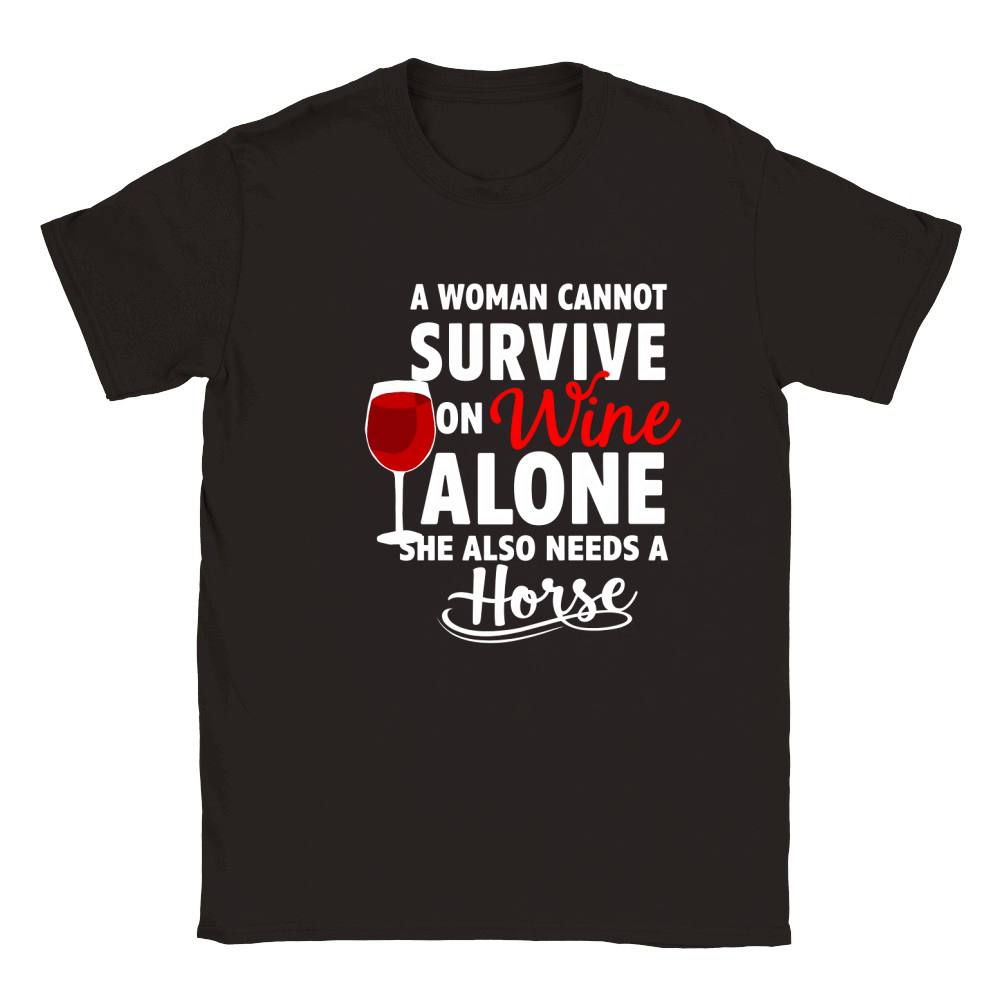 Shop A Woman Cannot Survive On Wine Alone She Also Needs A Horse Classic Kids Crewneck T-shirt custom made just for you. Available on many styles, sizes, and colors.