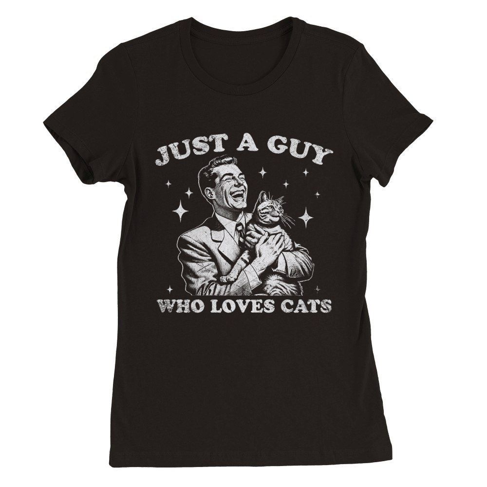 Shop Just A Guy Who Loves Cats D White GR Premium Womens Crewneck T-shirt custom made just for you. Available on many styles, sizes, and colors.