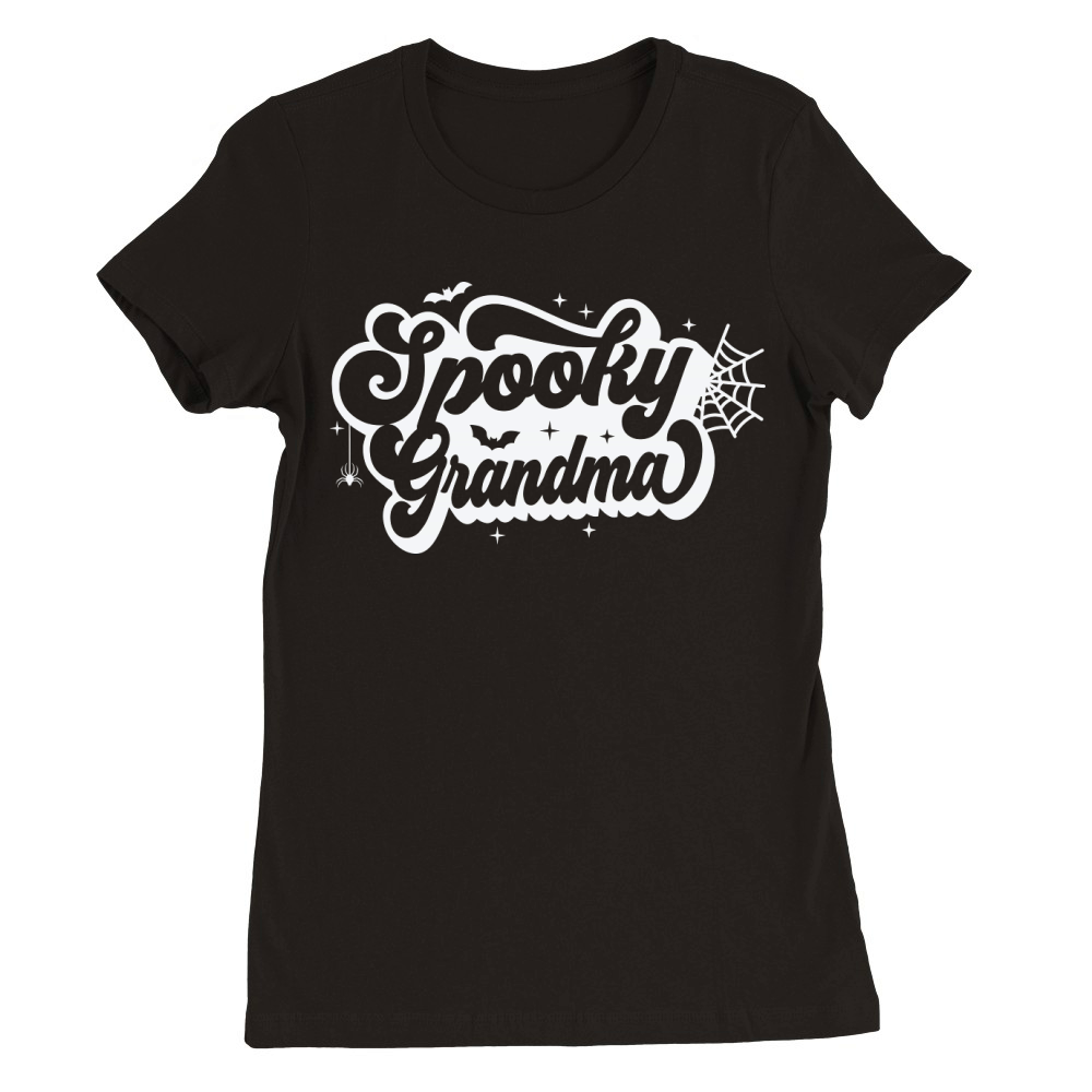 Shop SpookyGrandmaRetroWhite Premium Womens Crewneck T-shirt custom made just for you. Available on many styles, sizes, and colors.