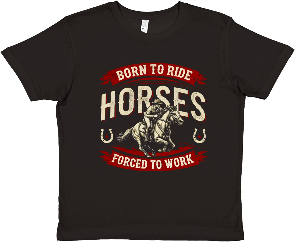 Shop Born To Ride Horses Forced To Work Premium Kids Crewneck T-shirt custom made just for you. Available on many styles, sizes, and colors.