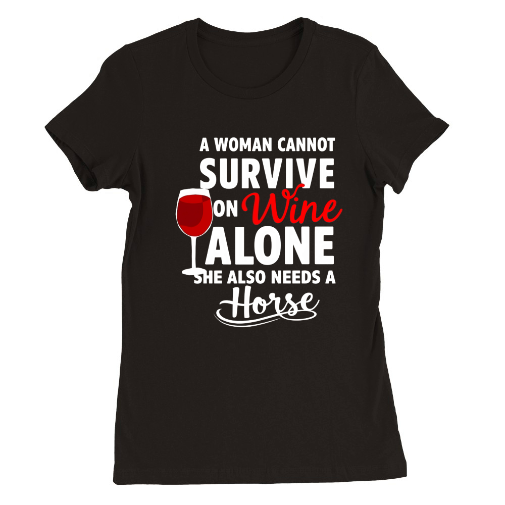 Shop A Woman Cannot Survive On Wine Alone She Also Needs A Horse Premium Womens Crewneck T-shirt custom made just for you. Available on many styles, sizes, and colors.