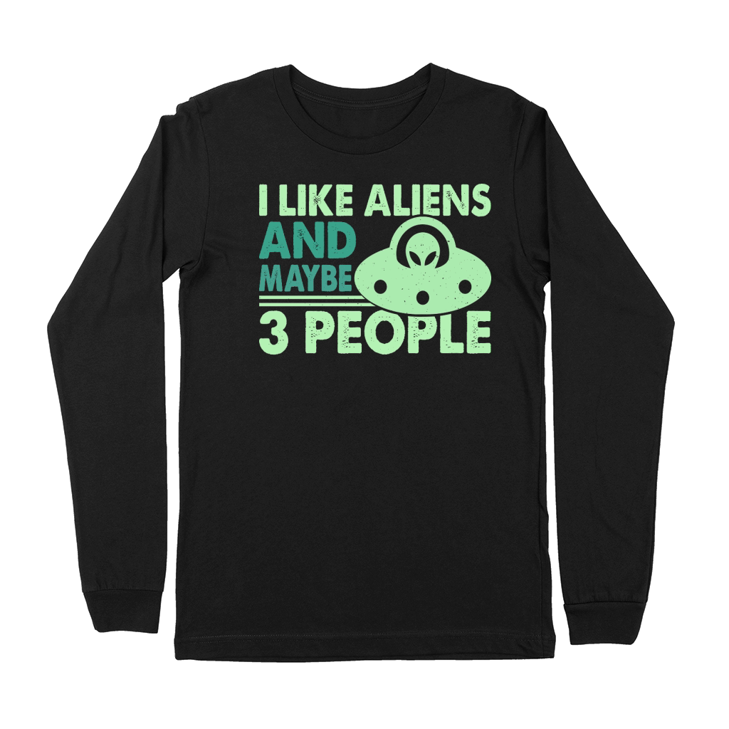 Shop Vintage UFO Alien I like Aliens And Maybe 3 People 6 Premium Long Sleeve custom made just for you. Available on many styles, sizes, and colors.
