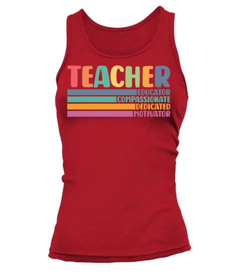 Shop Teacher Educator Compassionate Dedicated Motivator Tank top Woman custom made just for you. Available on many styles, sizes, and colors.