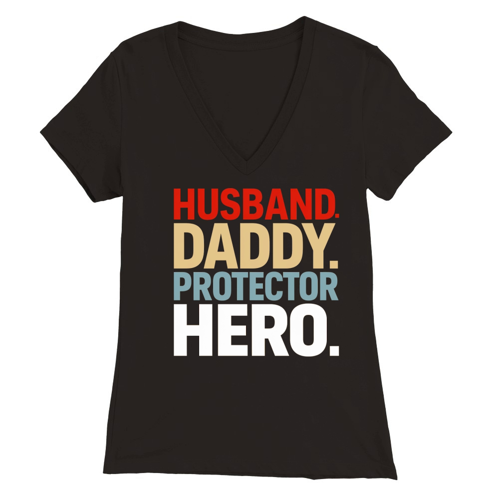 Shop Husband daddy protector hero Premium Womens V-Neck T-shirt custom made just for you. Available on many styles, sizes, and colors.
