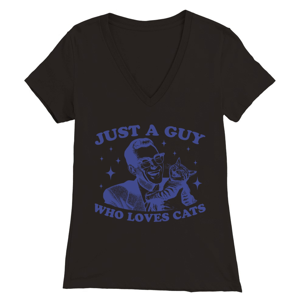 Shop Just A Guy Who Loves Cats L vBlue Premium Womens V-Neck T-shirt custom made just for you. Available on many styles, sizes, and colors.