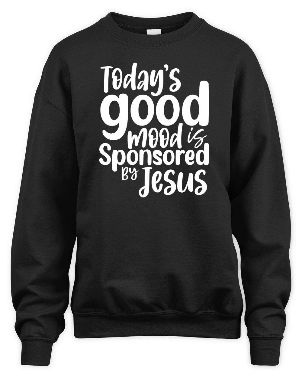 Shop Todays Good Mood Is Sponsored By Jesus Unisex Premium Crewneck Sweatshirt custom made just for you. Available on many styles, sizes, and colors.